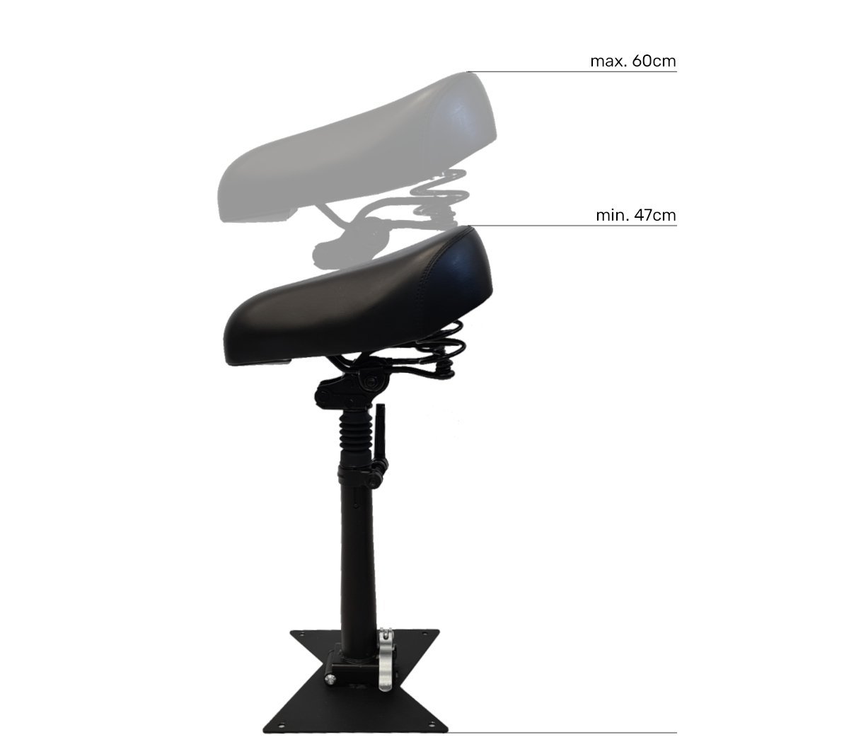 Siodełko posiada również możliwość regulacji wysokości od 47cm do 60cm